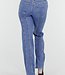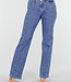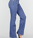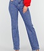 Diese blaue Jeans hat eine gerade Passform mit langen Beinen und auffälligen vertikalen Nähten vorne und hinten. Die Hose hat eine mittelhohe Taille mit Gürtelschlaufen, einen Knopf- und Reißverschluss und fünf Taschen. Der robuste Denimstoff bietet leichte Dehnbarkeit für Tragekomfort. Die Nähte sorgen für eine längere und schlankere Silhouette.