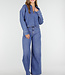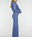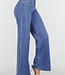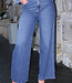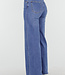 Diese blaue Jeans hat eine hohe Taille und weite, gerade Beine über die gesamte Länge. Das Modell ist aus robustem Stretch-Denim gefertigt. Die Jeans wird mit einem Reißverschluss und einem Metallknopf geschlossen und ist mit Gürtelschlaufen am Bund versehen. Der Saum ist gerade und vollständig durchgesteppt.