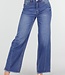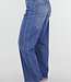 Diese blaue Wide-Leg-Jeans hat eine schmeichelhafte High-Waist-Passform und ein gerades, weites Bein. Die Jeans ist in einer mittelblauen Waschung mit dezenten Faded-Details auf der Vorderseite gehalten. Das 5-Pocket-Modell und der Knopf- und Reißverschluss sorgen für einen zeitlosen Look. Der Saum ist mit einem ausgefransten Rand versehen. Perfekt zu kombinieren mit einer Bluse, einem Top oder einem Blazer für einen lässigen oder eleganten Look.