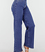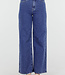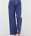 Diese blaue Jeans hat eine gerade Passform mit weitem Bein und einem hohen Bund. Der Denim ist einfarbig mit dezenter Waschung und ohne Risse oder Schrammen. Die Hose wird mit einem Reißverschluss und einem Knopf auf der Vorderseite geschlossen. Auf der Rückseite befinden sich zwei gerade Taschen. Der Schnitt ist lang und gerade am Bein entlang und besteht aus robustem Jeansstoff mit Stretch.