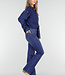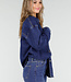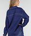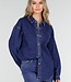Diese Jeansbluse ist aus dunkelblauem Denim mit einer geschmeidigen Struktur gefertigt. Das Modell hat einen klassischen Kragen und eine durchgehende Knopfleiste auf der Vorderseite. Die Bluse hat lange Ärmel mit Manschetten, die mit einem Knopf geschlossen werden. Die Passform ist gerade und fällt locker über den Körper.