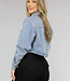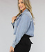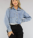 Diese Bluse aus Denim ist tailliert geschnitten. Sie hat einen gefalteten Kragen und lange Ärmel. Außerdem hat sie fünf Knöpfe und zwei große Taschen auf der Brust.
