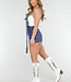 Dieser süße blaue Cargo-Playsuit im Latzhosen-Look ist perfekt für die schönen Sommertage. Mit den verstellbaren Trägern kannst du den Playsuit ganz an deinen Körper anpassen. Die funktionellen, übergroßen Cargotaschen verleihen dem Playsuit einen coolen Look und sind ideal, um all deine Sachen zu verstauen. Der Strampelanzug hat 2 Knöpfe auf beiden Seiten, so dass er leicht an- und ausgezogen werden kann. Der Playsuit hat außerdem Gürtelschlaufen und kann dank der verstellbaren Hosenträger mit einer Schulter oder locker getragen werden.