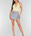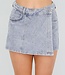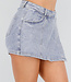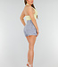 Dieser blaue Skort aus kariertem, gerüschtem Denim mit hoher Taille und Stretch für optimalen Komfort. Die Vorderseite ist mit kleinen Strasssteinen für einen dezenten Glitzereffekt und einer Lasche versehen. Der Verschluss besteht aus einem Knopf und einem verdeckten Knopf mit Reißverschluss und ist mit Gürtelschlaufen ausgestattet. Der Skort hat zwei Eingrifftaschen auf der Vorderseite und zwei aufgesetzte Taschen auf der Rückseite.