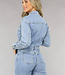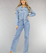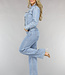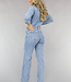 Dieser Overall hat einen langärmeligen, geraden Beinschnitt und enthält viel Stretch. Er hat unten gerade Beine und ein langärmeliges Oberteil. Vorne wird er mit sechs Knöpfen und einem Reißverschluss geschlossen. Außerdem hat der Jumpsuit zwei Brusttaschen und zwei Seitentaschen auf der Vorderseite sowie zwei Gesäßtaschen auf der Rückseite. Dieser coole Jumpsuit ist aus einem coolen Denim-Stoff gefertigt.