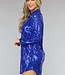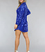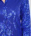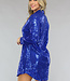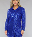Dieses tolle Kleid hat einen übergroßen Blusenstil und ist komplett mit Pailletten besetzt. Es hat eine zusätzliche Schicht auf der Innenseite, die verhindert, dass die Pailletten jucken. Außerdem hat das Kleid lange Ärmel und einen Kragen an der Oberseite. Das Kleid hat vorne einen Knopfverschluss, der aus acht Knöpfen besteht. Dieses Kleid enthält Stretch.