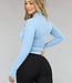 Dieses langärmelige Sportoberteil ist aus einem glatten, atmungsaktiven Stretchmaterial gefertigt und hat einen Reißverschluss auf der Vorderseite. Die Ärmel des Tops sind lang und haben Daumenlöcher am Ende. Dieses Top enthält keine Cups.