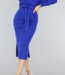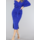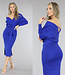 Blaues schulterfreies Rippenkleid mit Taillenband
