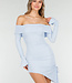 Hellblaues kurzes Off-Shoulder-Bodycon-Kleid mit Stretch