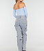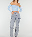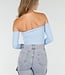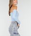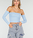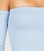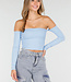 Dieses Oberteil ist aus Stretchstoff gefertigt und hat einen Off-Shoulder-Schnitt. Es ist mit herausnehmbaren Polstern ausgestattet, sodass das Tragen eines BHs überflüssig ist.