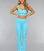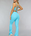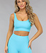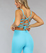 Dieses ärmellose Oberteil besteht aus dehnbarem Rippstoff. Das Oberteil ist ärmellos und verfügt über herausnehmbare Polster. Die Rückseite des Tops ist offen und hat eine gekreuzte Schnürung auf der Rückseite.