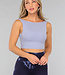 Blaues Sporttop mit offenem Rücken und Polsterung
