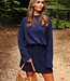 Dunkelblaues 2-teiliges Strick-Set mit Pullover und Rock