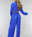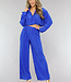 Dieses tolle Plissee-Set ist aus einem fließenden Plissee-Stoff gefertigt und ist wunderbar bequem! Das Set besteht aus einer Bluse und einer Hose. Die Bluse hat sieben Knöpfe auf der Vorderseite. Diese Knöpfe befinden sich auch am Ende der Ärmel. Die Hose hat ein weites Beinmodell und eine hohe Taille. Oben an der Hose befindet sich ein Gummiband, wodurch sie sehr bequem zu tragen ist. Das Set hat einen hohen Stretchanteil.