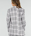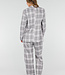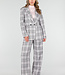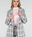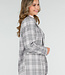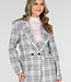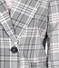 Dieser Blazer ist in Grau und Rosa mit einem Karomuster gehalten. Das Modell hat eine gerade Passform und ist mit Schulterpolstern versehen. Der Blazer hat einen Reverskragen, eine doppelte Knopfleiste vorne und lange Ärmel. Auf der Vorderseite sind Paspeltaschen zu sehen. Das Material hat eine gewebte Struktur und das Design fällt über die Hüfte.