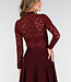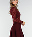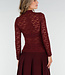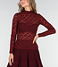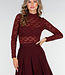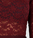 Dieses burgunderfarbene Oberteil ist aus einem dehnbaren Spitzenstoff mit Blumenmuster. Der Stoff ist transparent. Das Modell hat lange Ärmel und einen schmalen Rollkragen. Das Oberteil fällt gerade am Körper entlang und hat eine leicht enge Passform.