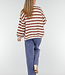 Gestrickte Strickjacke mit breiten braunen und weißen Streifen und einem weichen, flauschigen Look. Das Modell ist locker geschnitten und hat eine offene Vorderseite ohne Verschluss. Die Ärmel sind leicht ballonförmig und enden in einem schmalen Bündchen. Die Textur ist wollig und voluminös und sorgt für einen gemütlichen Look.