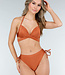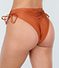 Diese Bikinihose hat ein freches Design und ist bronzefarben. An beiden Seiten der Hose befinden sich Schleifendetails, die diese Hose besonders hübsch machen! Du kannst die Seiten anpassen, indem du die Schleifen festziehst oder lockerer lässt. Außerdem hat sie einen Scrunch am Po, wodurch sie schön zwischen den Pobacken sitzt.