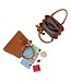 Braune Handtasche mit kariertem Relief, Schal und Pompon