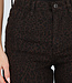 Diese Jeans ist aus braunem Denimstoff mit einem durchgehenden Leopardenmuster gefertigt. Das Modell ist elastisch, hat eine hohe Taille, einen klassischen Knopf- und Reißverschluss und gerade Beine über die gesamte Länge. Die Jeans hat fünf Taschen mit Gürtelschlaufen und einen festen Bund. Der Stoff hat eine feste Struktur mit leichtem Stretchanteil.