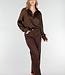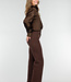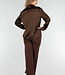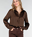 Diese braune Bluse hat einen Satin-Look mit dezentem Glanz. Die Bluse hat lange Ärmel mit Manschetten, einen klassischen Hemdkragen und eine Knopfleiste vorne. Der geschmeidige Stoff sorgt für einen eleganten und stilvollen Look.