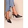 Braune Slingback-Pumps mit goldfarbenen Metallbeschlägen