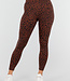 Diese Sportleggings sind aus braunem Stretchmaterial mit durchgehendem Leopardenmuster gefertigt. Das Modell hat eine enge Passform und einen hohen Bund mit breitem Bund für zusätzlichen Halt. Die Leggings sind vollständig elastisch und schmiegen sich eng an den Körper an.