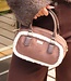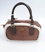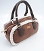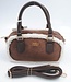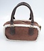 Diese braune Handtasche ist aus Wildleder gefertigt und mit einem weißen Teddyfellbesatz an den Rändern verziert. Das Design verfügt über zwei stabile Griffe aus braunem Kunstleder und einen abnehmbaren, extra langen Schulterriemen, sodass die Tasche sowohl in der Hand als auch als Umhängetasche getragen werden kann. Die Oberseite ist mit einem goldfarbenen Reißverschluss und goldfarbenen Ringen versehen. Dank ihrer kompakten Form ist die Tasche perfekt für Ihre täglichen Essentials.