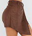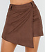 Dieser braune asymmetrische Skort hat einen stilvollen Wildleder-Look und einen Überwurf vorne. Der Stoff enthält Stretch, wodurch der Skort bequem zu tragen ist und sich schön an den Körper anschmiegt. Dank der integrierten Hose hast du zusätzliche Bewegungsfreiheit und Tragekomfort. Die weiche, samtige Verarbeitung verleiht dem Skort einen schicken Look.