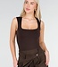 Brauner Body mit quadratischem Ausschnitt und breiten Trägern