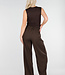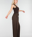 Dieser Body ist in Braun gehalten und hat eine figurbetonte Passform. Das Modell ist ärmellos und hat vorne einen quadratischen Ausschnitt. Der Body ist an den Hüften hoch geschnitten. Der untere Teil wird mit einem Hakenverschluss geschlossen. Der Stoff ist glatt und elastisch.