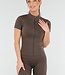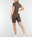 Dieses braune Sportset besteht aus einer kurzen Jacke mit Reißverschluss und einer passenden, hoch taillierten Shorts. Die Shorts haben einen korrigierenden, verstärkten Bund, der für einen festen Sitz sorgt. Das geschmeidige Stretchmaterial bietet optimale Bewegungsfreiheit beim Sport. Die abgesteppten Linien und Details verleihen ihr einen coolen Look und betonen Ihre Figur!