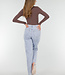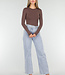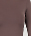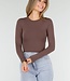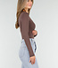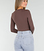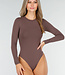 Dieser braune Body ist aus einem glatten Stretchmaterial gefertigt, das sich eng an den Körper schmiegt. Das Modell hat lange Ärmel und einen Rundhalsausschnitt. Der Stoff ist elastisch und bietet daher viel Bewegungsfreiheit. Der Body wird unten mit Druckknöpfen geschlossen.