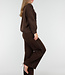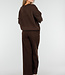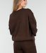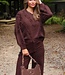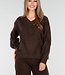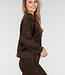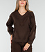 Dieser braune Pullover ist aus grob gestricktem Stoff gefertigt und hat einen V-Ausschnitt. Der Strick ist grob und mit Ausfransungen versehen, die über die Vorder- und Rückseite sowie die Ärmel verteilt sind. Der Pullover hat lange Ärmel und eine gerade Passform mit Rippbündchen an Hals, Ärmeln und Saum.