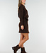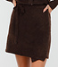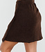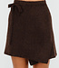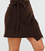 Dieser braune Rock ist aus einem weichen, dehnbaren Strickstoff gefertigt. Das Modell hat einen Überwurf vorne, der mit einem Kordelzug an der Seite geschlossen wird. Der Rock reicht bis knapp über das Knie und hat einen geraden Schnitt hinten. Dank der Strickstruktur ist der Rock bequem zu tragen und behält seine schöne Passform.