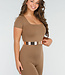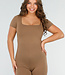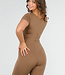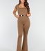 Dieser braune Jumpsuit ist aus einem Stretch-Stoff gefertigt, hat ausgestellte Beine und einen eleganten quadratischen Ausschnitt mit kurzen Ärmeln. Das Design ist sowohl schick als auch bequem und eignet sich perfekt für einen Tagesausflug oder eine lässige Ausgehparty. Der weiche Stoff bietet eine hervorragende Passform, während die Schlaghosenbeine dem Look einen Retro-Look verleihen. Es ist eine vielseitige Wahl, die sowohl mit Absatzschuhen als auch mit Turnschuhen getragen werden kann, was es zu einem Must-Have für Ihre Sommeroutfits macht.
