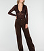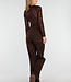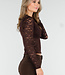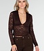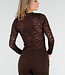 Braunes Crop-Top mit Spitze und langen Ärmeln