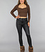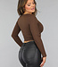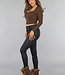 Braunes Top aus geripptem Stoff mit Rundhalsausschnitt