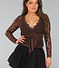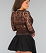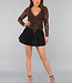 Dieses süße Oberteil ist aus einem Spitzenstoff mit etwas Stretch gefertigt. Das Oberteil hat ein Fold-over-Design und kann mit Hilfe der beiden Träger gefaltet werden. Auf der rechten Seite hat das Oberteil eine Öffnung, durch die der linke Träger geführt werden muss. Das Oberteil kann an der Seite oder vorne gebunden werden. Das Oberteil hat lange Ärmel und ist durchsichtig. Am Hals, an den Handgelenken und am unteren Ende des Oberteils ist es mit Wellenkanten versehen. Das Oberteil ist auch durchsichtig.