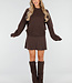 Dieses braune 2-teilige Set besteht aus einem locker sitzenden Pullover und einem passenden Rock. Der Pullover hat einen Rundhalsausschnitt, lange Ärmel und eine bequeme gerade Passform. Der Rock ist kurz geschnitten und hat ein gefaltetes Rippenmuster, das mit einem elastischen Bund für eine perfekte Passform abgerundet wird. Das Set kann sowohl zusammen als auch separat getragen werden.