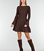 Braunes Strickkleid mit einer dezenten A-Linien-Form, das geschmeidig fällt. Die langen Ärmel laufen leicht ausgestellt aus und sorgen für einen eleganten Look. Der Rundhalsausschnitt und das minimalistische Design verleihen dem Kleid einen zeitlosen, schlichten Look. Die fein gestrickte Textur sorgt für ein gepflegtes und gleichmäßiges Finish.
