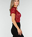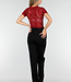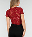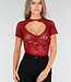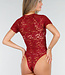 Burgunderfarbener Body aus Stretch-Spitze mit offenem Rücken und kurzen Ärmeln und offenem Rücken