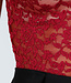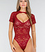 Dieser Body ist aus weinroter Spitze mit Stretch-Anteil für zusätzlichen Komfort. Er hat kurze Ärmel, einen Rundhalsausschnitt und einen offenen Rücken mit Hakenverschluss oben. Der Body ist komplett aus transparenter, floraler Spitze gefertigt und hat hohe Beinausschnitte. Dank des Stretchmaterials sitzt der Body angenehm.