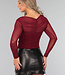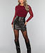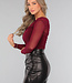 Dieses Oberteil ist aus einem Mesh-Tof gefertigt. Es ist gefüttert und scheint daher im Brustbereich nicht durch. Es hat außerdem eine Überlappung über der Brust, die dem Oberteil einen einzigartigen Look verleiht. Die Ärmel sind lang und lichtdurchlässig. Es hat keinen Reißverschluss, aber durch den dehnbaren Stoff lässt es sich leicht an- und ausziehen.