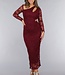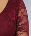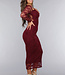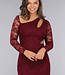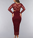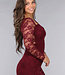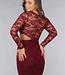 Burgunderfarbenes Spitzenkleid mit schrägem Ausschnitt und Cut-Out