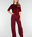 Diese burgunderrote Hose ist aus einem geschmeidigen Stoff mit Glitzerfinish gefertigt. Das Modell hat einen hohen, elastischen Bund und gerade, locker fallende Hosenbeine. Die Vorderseite ist mit Falten für einen schicken Fall und zwei praktischen Seitentaschen versehen. Der Stoff hat eine weiche Struktur mit Stretchanteil.