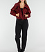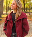 Diese burgunderrote Windjacke ist kurz geschnitten und aus einem leicht strukturierten Stoff gefertigt. Die Jacke hat einen auffälligen breiten Kragen mit Druckknopf- und Reißverschluss, einen elastischen Saum mit Kordelzug und lange Ärmel mit Gummizug. Die Jacke ist mit zwei Seitentaschen auf der Vorderseite versehen. Dank des luftigen, aber robusten Stoffes ist diese Jacke perfekt für die Übergangszeit geeignet.