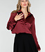 Diese bordeauxrote Bluse hat einen Satin-Look mit dezentem Glanz. Die Bluse hat lange Ärmel mit Manschetten, einen klassischen Hemdkragen und eine Knopfleiste vorne. Der geschmeidige Stoff sorgt für einen eleganten und stilvollen Look.