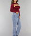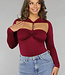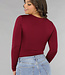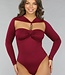 Dieser Body ist aus einem Stretch-Stoff gefertigt. Er hat lange Ärmel mit einem schönen Ausschnitt oberhalb der Brust. Außerdem hat der Body ein schönes goldenes Ring-Detail am Ausschnitt. Im Brustbereich ist der Body gedreht und mit nicht herausnehmbaren Polstern versehen, die das Tragen eines BHs überflüssig machen. Unten hat der Body einen Hakenverschluss, der aus zwei Haken besteht, die in drei Positionen verstellt werden können.