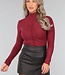 Burgunderfarbenes T-Shirt mit hohem Ausschnitt